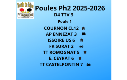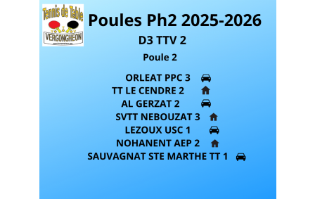 Poules de la Ph2 de la saison 2025-2026