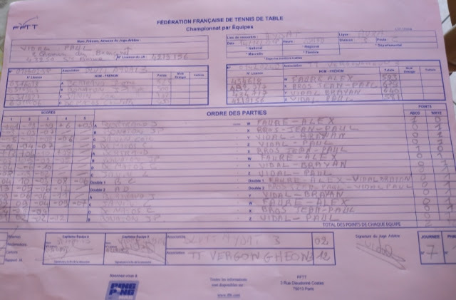 CHAMPIONNAT PAR EQUIPES, 7ème journée / Contre DLV TT AYDAT 3