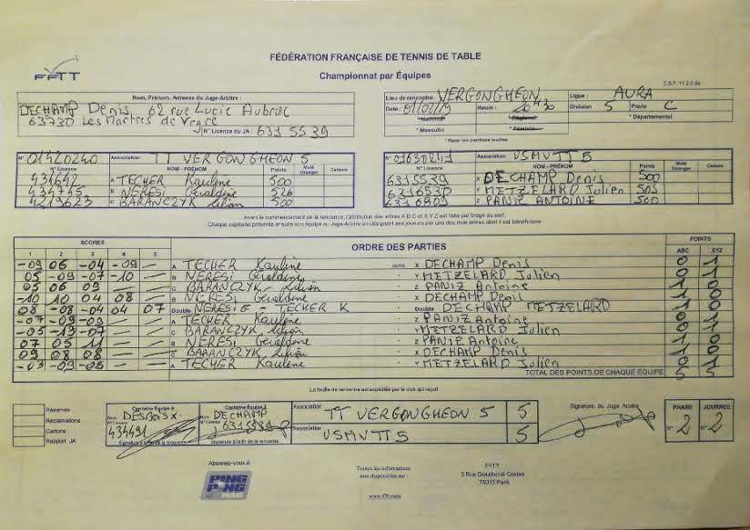 CHAMPIONNAT PAR EQUIPES, 9ème journée / Contre USMV TT 5