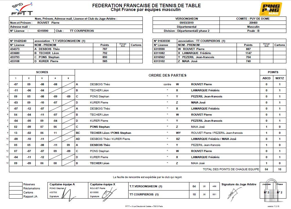 CHAMPIONNAT PAR EQUIPES, 10ème journée / Contre TT COURPIEROIS 1