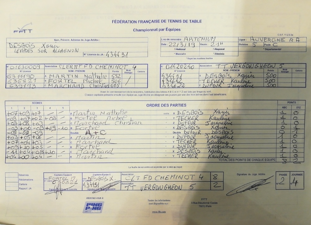 CHAMPIONNAT PAR EQUIPES, 11ème journée / Contre CLT-FD-CHEMINOT 4