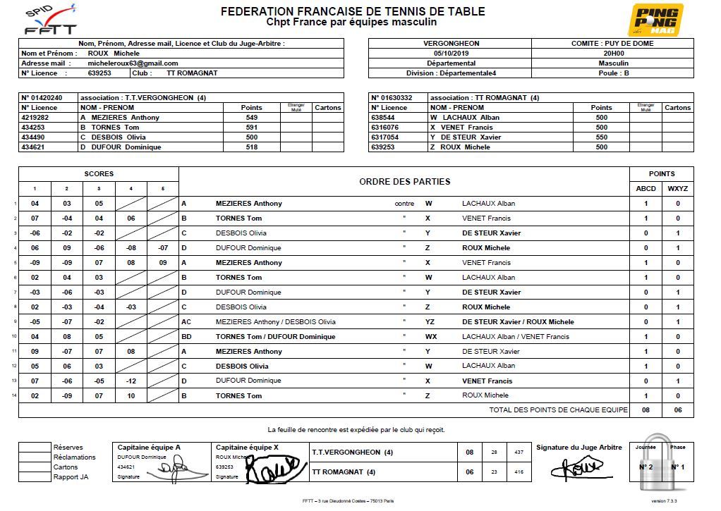 CHAMPIONNAT PAR EQUIPES, 2ème journée / Contre TT ROMAGNAT 4