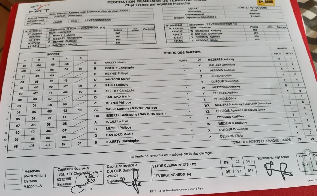 CHAMPIONNAT PAR EQUIPES, 8ème journée / Contre STADE CLERMONTO 12