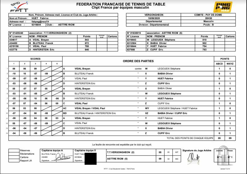 CHAMPIONNAT PAR EQUIPES, 1ère journée / Contre ASTTRE RIOM 5