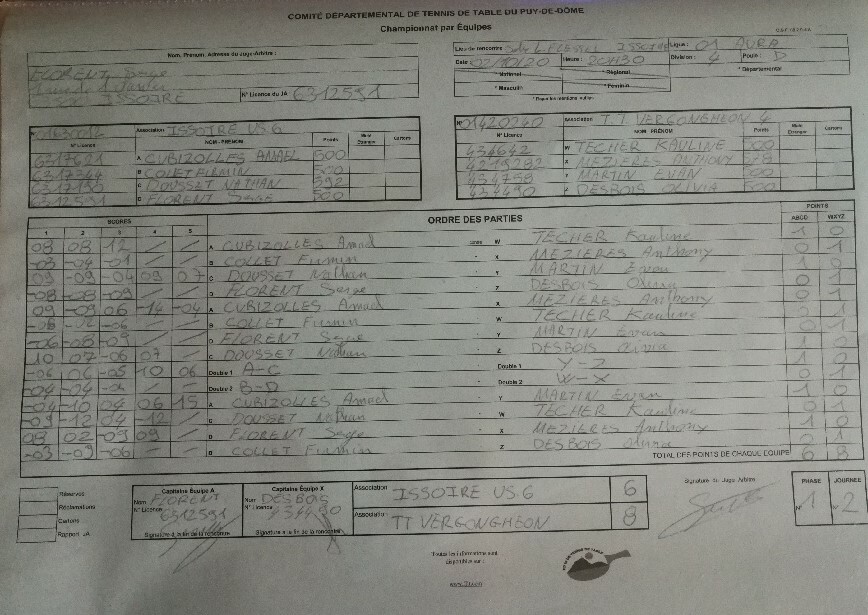 CHAMPIONNAT PAR EQUIPES, 2ème journée / Contre ISSOIRE US 6