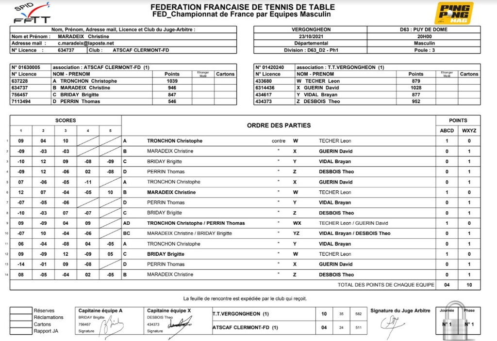 CHAMPIONNAT PAR EQUIPES, 3ème journée / Contre CLT-FD ATSCAF 1