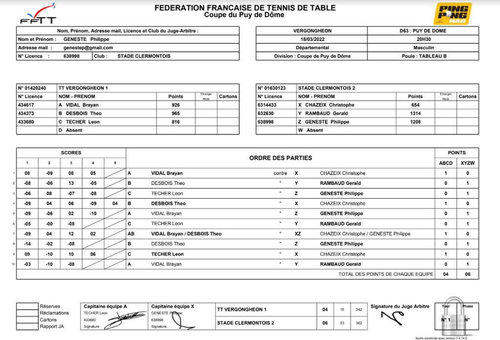 Coupe du Puy de Dôme, 1ère journée / Contre STADE CLERMONTO 2