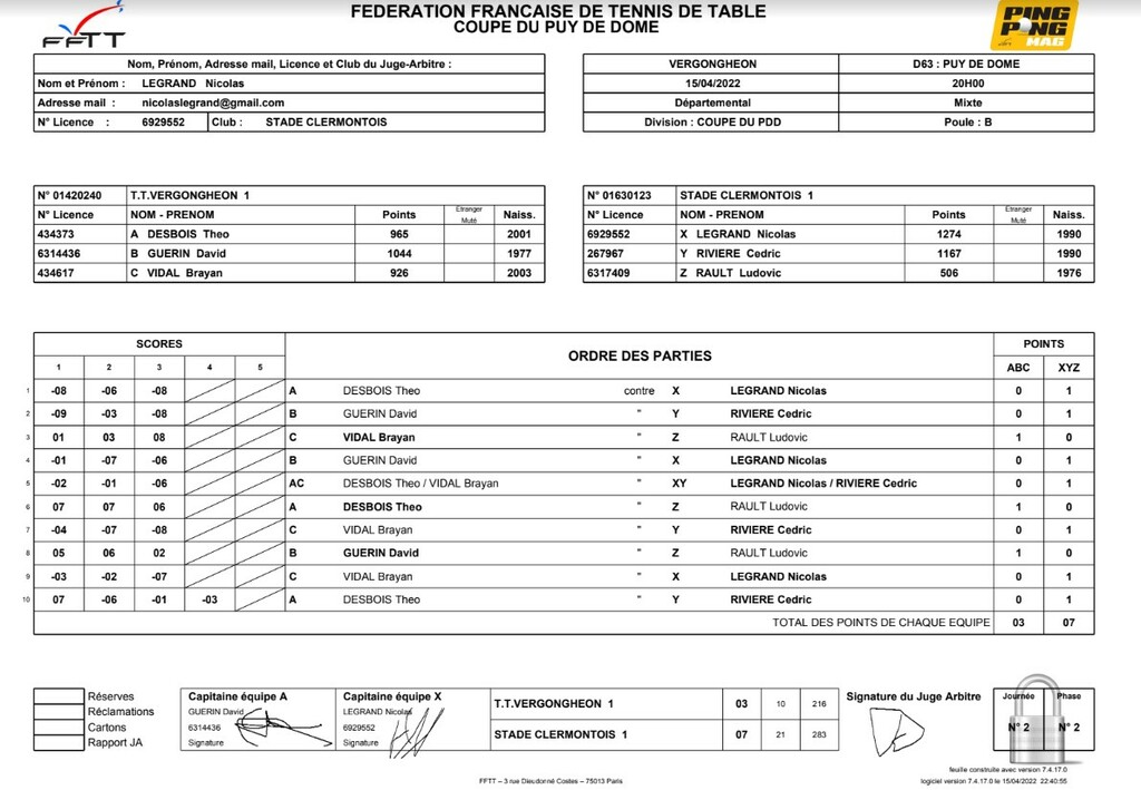 2ème tour de la Coupe du Puy de Dôme TTV 1