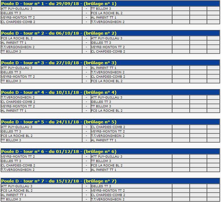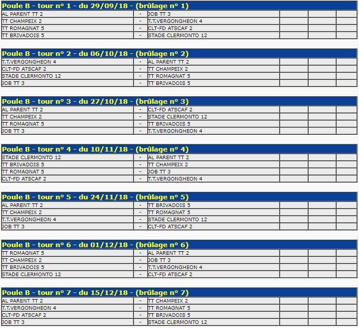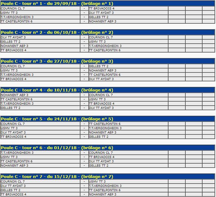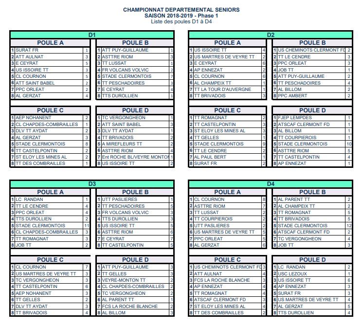 Poules Phase 1 avec Calendrier saison 2018-2019